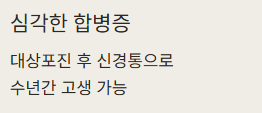 - 방치하면 대상포진 후 신경통으로 이어져 수개월~수년 고통 가능