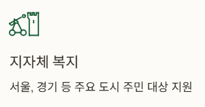 - 일부 지자체(서울, 경기, 지방 주요 도시) 주민 대상 지원 프로그램 운영