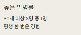 - 50세 이상 인구의 약 3명 중 1명이 평생 한 번은 경험