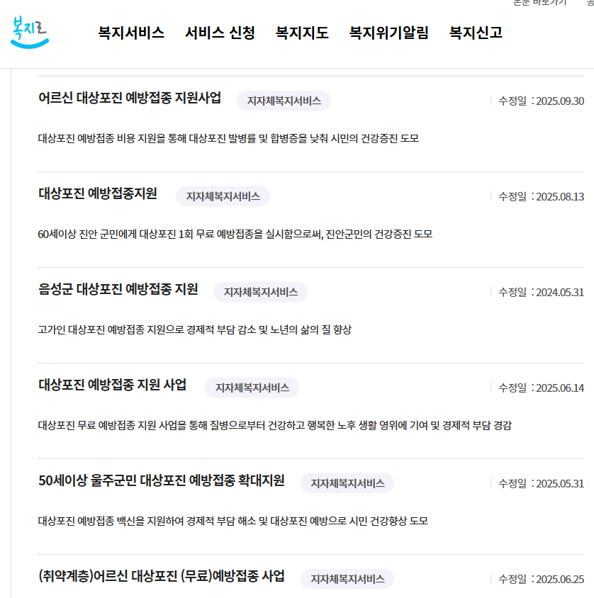 - 노인복지관, 건강검진 프로그램에서 단체 무료 접종 기회 제공