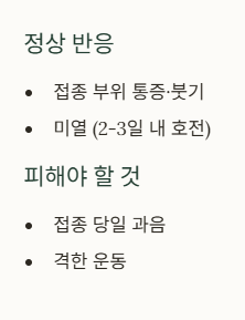 - 접종 부위 통증·붓기·발열은 흔한 반응 (2~3일 내 호전)