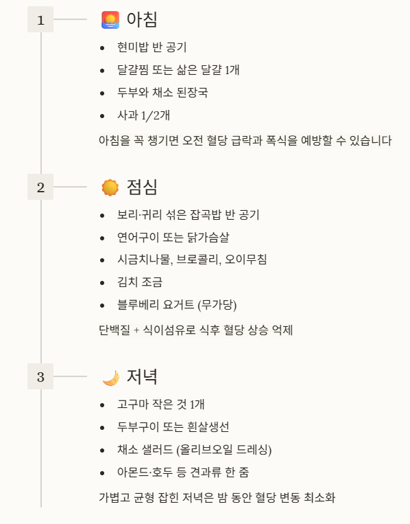 오늘은 혈당을 안정적으로 유지하는 식습관과 하루 식단 예시를 알려드리겠습니다.