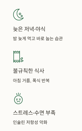 - 스트레스·수면 부족 – 인슐린 저항성 악화