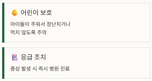- 아이들이 주워서 장난치거나 먹지 않게 주의