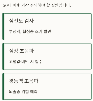 50대 이후 건강검진은 단순한 확인이 아니라, 미래 질병을 예방하는 선제 조치입니다.