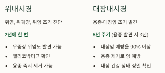 ❗ 대장내시경: 5년 주기(용종 발견 시 3년 주기 재검)