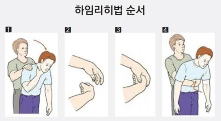 '하임리히법'이란 기도가 음식물이나 이물질로 막혀 숨을 쉴 수 없을 때,