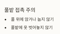 옷·신발·피부 노출 부위에 기피제(피레트린 계열 등) 도포 - 풀밭 접촉 최소화