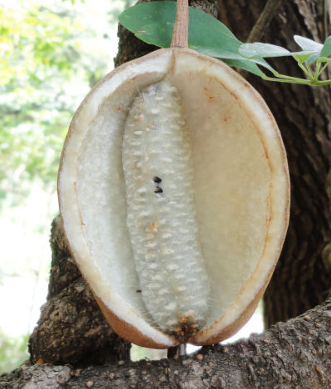 덩굴식물 형태로 다른 나무에 감겨 자람 - 열매가 자연스럽게 터져 속살이 드러나면 수확 시기