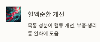 - 부종 완화, 생리통 완화, 혈액 정체 해소에 전통적으로 쓰였어요.