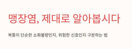 ✅ 3개 이상 해당 시: 맹장염 가능성 높음 → 즉시 내과·외과 방문