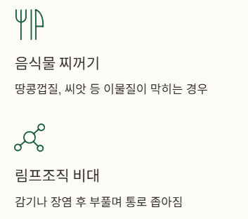| 4️⃣ 림프조직 비대 | 감기나 장염 후 림프조직이 부풀며 통로를 좁힘 |