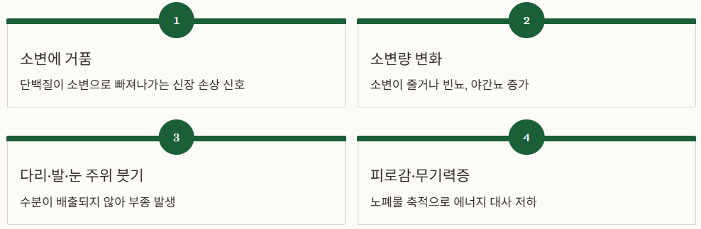 하지만 소변 이상·붓기·피로감은 매우 중요한 신호입니다.