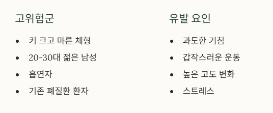 - 키 크고 마른 체형의 젊은 남성에게 자주 발생