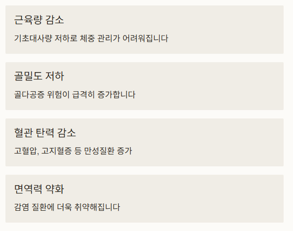 50대 이후는 노화와 만성질환이 본격적으로 시작되는 시기입니다.