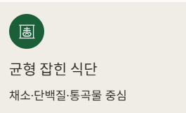 - 균형 잡힌 식단(채소·단백질·통곡물)